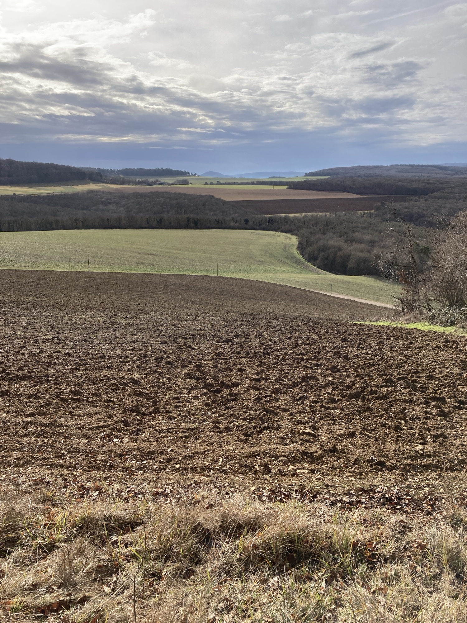 Après quelques jours entre pluie et neige, je vous écris depuis la rente de Chamerey, une ancienne ferme isolée réaménagée en refuge dans l’arrière côte dijonnaise. Normalement, c’est fermé à cette période mais les propriétaires Dominique et Anne-Marie ont la gentillesse de me laisser y séjourner. C’est inespéré et tellement agréable d’être à l’abri de ces vieilles pierres que le poêle réchauffent lentement.
