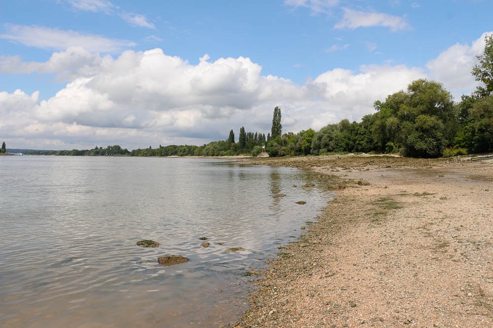 J’ai rapidement décidé de lâcher le GR pour rester au plus proche de l’eau. J’ai suivi des sentiers forestiers et des pistes cyclables brûlantes. J’ai traversé le fleuve avec des ponts et des bacs. J’ai marché le nez dans une odeur d’essence dans une raffinerie. J’ai regardé les porte-conteneurs naviguer bruyamment. J’ai grimpé sur les falaises calcaires. J’ai dormi sur les rives du fleuve et un ragondin est venu fouiller dans la chariotte en pleine nuit. Je me suis arrêtée dans plusieurs maisons, des moments de pause et de partage qui font du bien. J’ai pris le temps.