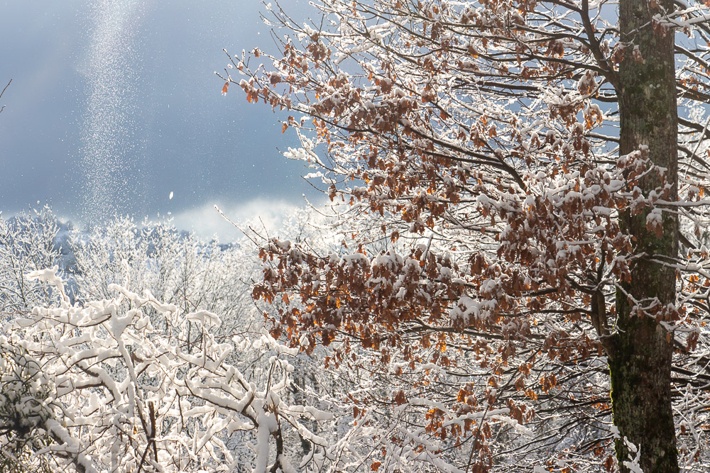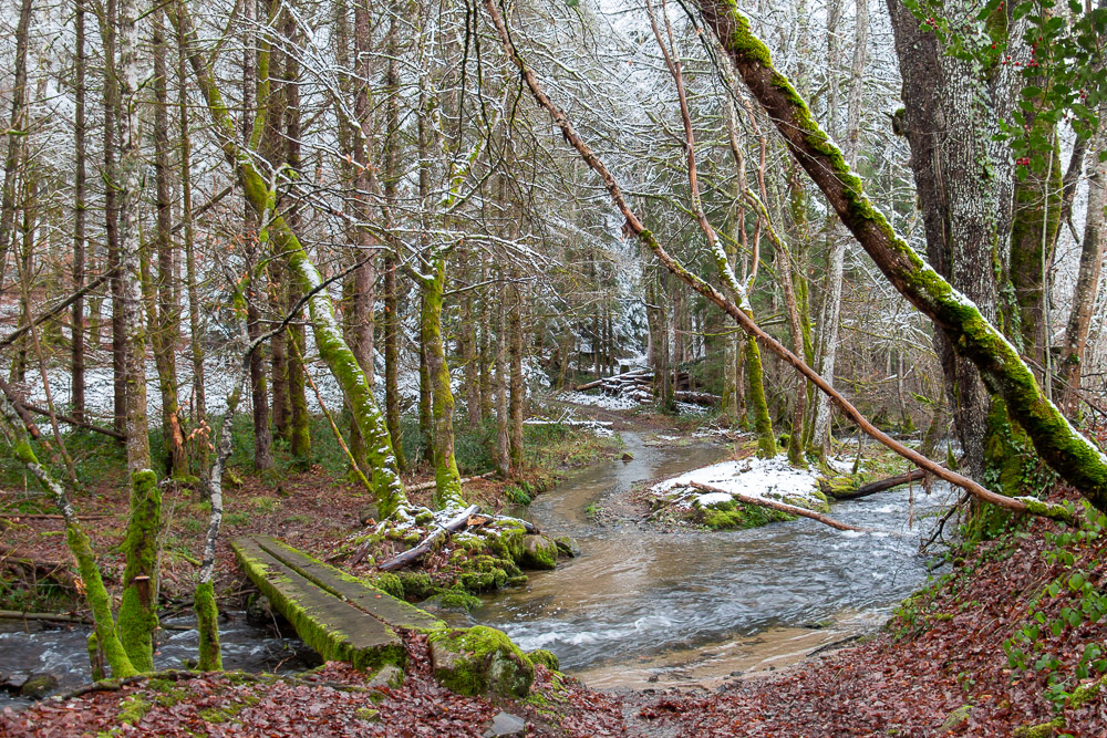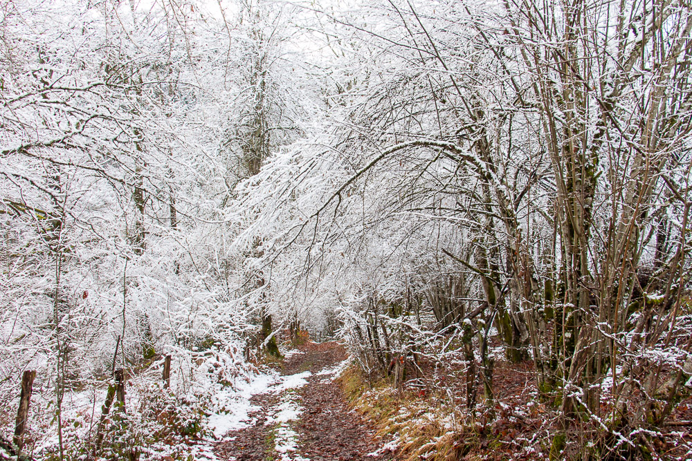 5 cartes postales sur le thème de la forêt enneigée de la Montagne bourbonnaise